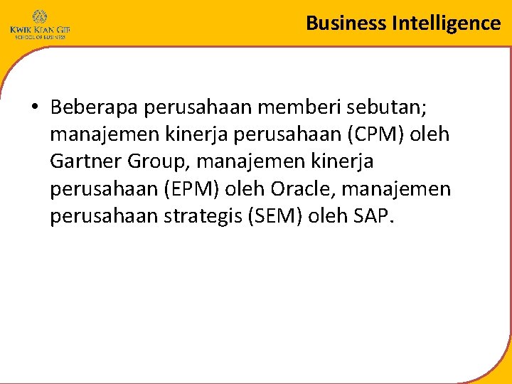 Contoh Penerapan Business Intelligence Pada Perusahaan Oracle : Itb 2004 Perancangan E Business Business Intelligence Noverino Kharizt : Dari perusahaan, dan tidak diorganisasikan pada.