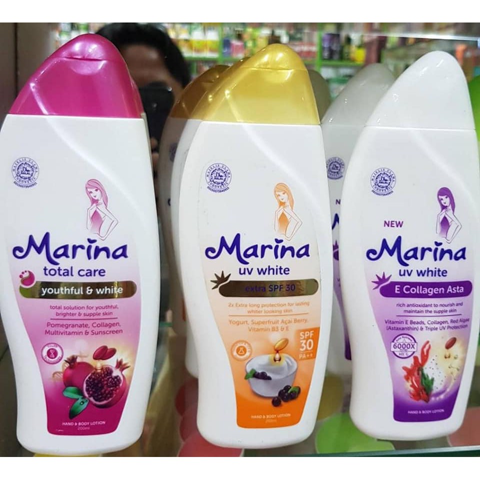 Lotion dengan 3x active white yaitu biowhitening complex, milk protein dan lainnya teruji klinis memutihkan kulit cerah merata, serta melindungi kulit dari . Cek harga hand body marina di priceza.co.id. Informasi terlengkap tentang marina hand body lotion uv white healthy & glow 200 ml. Handbody marina uv whitening hand body lotion 100ml kulit halus terawat, rp5.000. Handbody marina merupakan produk yang berguna untuk membelikan kelembaban ekstra pada kulit kering.